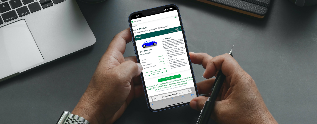 Instabank er vår første samarbeidspartner. Gjennom vår enkle heldigitale kjøpsløsning har vi sammen med Instabank lansert to forsikringer; bilforsikring og reiseforsikring.